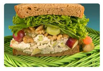 These chicken salad sandwiches have a ton of extra flavor and are a lot healthier than the muck you'll get at the local sub shop. Next time you fire up the grill, throw on a couple of extra pieces of chicken and you'll be glad at lunchtime the next day. You can use white, dark, or a mix of chicken.